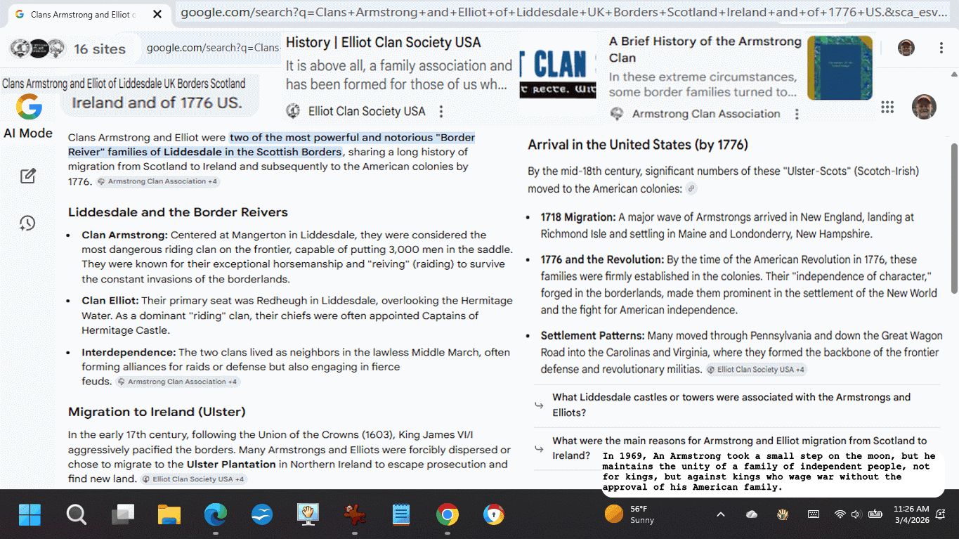 Elliott along with the Armstrong, by supporting Charles II, and the local Catholic population as Royalists we fought against Cromwell then transported as slaves to the American Colonies. Charles II, did become king, which today is a better government then their continuence of a genocidal policy of getting rid of the backstop. These Armstrong and Elliott of County Femanagh, Ireland no longer need a border of violence rapped around them.